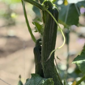きゅうり🥒 最初に収穫できそうなのが 出来てきました🥒 今年はゴーヤと同じネットで➰ 早く大きくなぁれ🤗🎵