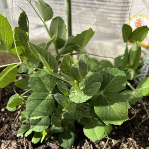 おはようございます☀ えんどう豆🫛 元気に大きくなってます 1メートルぐらいしか 大きくならない種類です いっぱい成ってくれると いいなぁ〜🫛🫛🫛 寒さ対策しっかりと🧶