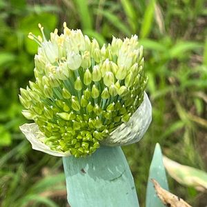 今日のお花 「ネギ」 ①6/30ネギの花 ②5/3 タマネギ(茎) ③ LINEで届いた“まぜそば”の白髪ネギ いつもネギ苗を畝の上に斜めにして置くのが不思議でしたが 光に向かって伸びる性質を利用しているのだと謎が解けました ネギ(葱) ヒガンバナ科ネギ属の畑で栽培される多年草 古名は「き(紀)」 別名は「一文字(ヒトモジ)」 紀元前200年頃には既に中国で栽培されていて日本には奈良時代に渡来した ネギの花は葉の間から伸びた円柱状の花茎の先端につきネギ坊主と呼ばれる ネギ坊主は薄い膜質の総苞に包まれて多数の白緑色の花を密集して咲く ネギの伸びた様子を探したのですが見つからず代わりに同じ科、属のタマネギを載せました 違いはタマネギは鱗茎が大きく肥大したものです 日本には鑑賞用とされ栽培されたのは明治時代の洋食の発展と共になるようです
