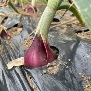 赤玉葱収穫間近。赤いのは表面だけの赤玉葱でした。がっかりです。