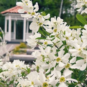 真っ白でバラ科のお花アップで! 利休梅リキュウバイ バラ科 ヤナギザクラ属