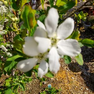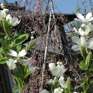〓午後の投稿便🚚〓 ≡ご近所の名所シリーズ≡✨🌿🚶 <赤坂お茶屋屋敷跡> =⑤= 【花壇に咲く花たち・其の五】 花柄を覗いてみると鳥たちの食事の痕なのか、 かなり傷んでるのが分かりますが😝😂🤭 このリキュウバイ(利休梅)はバラ科の植物の1種で、 学名はExochorda racemosa。 別名はウメザキウツギ、 バイカシモツケ、 ウツギモドキ、 マルバヤナギザクラなど 色々あります😅👍 *Wiki参照* いつも 🏷️チーム岐阜🍀投稿ありがとうございます😆🙌💕✨🍀💐…(*- -)(*_ _)ペコリ