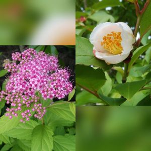 こんばんはー! 家の庭から… 夏椿(シャラノキ) シモツケ(下野) 💠咲いてきました~!🎶😄