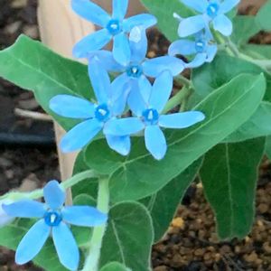 6月7日(土)曇り☁️ おはようございますo(^_-)O🌅 今日のお花、この花を訪ねて 30里やっと見つけたところは なんと、花木センターの販売 コーナーでした。6月1日撮影 💙💙💙💙🔵🔵🔵🔵🟢 オキシベタラム・ブルースター