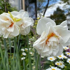 💙○︎o。空と植物。o○︎🤍 おはようございます❣︎ 🤍おしゃべりにぎやか姉妹の八重咲き水仙\💛/ 🟡香りをクンクンするの忘れてしまった♡︎( ॢꈍ૩ꈍ)੭*クンクン♡︎ 🍀良い香りがするらしい〜🤗