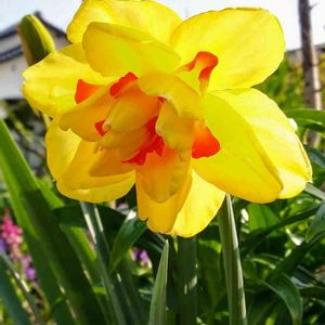 今日も良い天気☀️ 秋植え球根からの 八重咲きスイセンの2種類目 咲きました‼️ 一昨年植えた真っ白のジャンボスイセンどこいっちゃったのかなぁ~😅