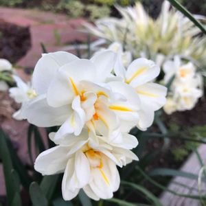 こんにちは☀️ 八重咲き水仙、 今年も咲きました♡ 今日は、お日様がポカポカとっても 気持ち良いガーデニング日和ですね❣️♪