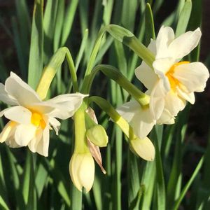 今日はとっても暖かいです☀️ お花たちも、気持ち良さそう☺️ ずーっと植えっぱなしだった水仙 🐕に掘られてしまい、あちこちに散らばってしまった球根😢 拾い集めてプランターに植え、🐕エリアから避難しました💦💦 無事に咲き、ひと安心です☺️ 今年は葉の背丈が低く、いい感じ💕
