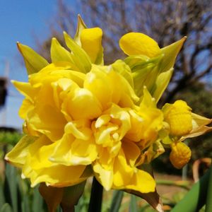 八重咲き水仙フォンシオン 華やかに開いてくれました(*´∀`*)ポッ💛 明るいお花で、 今日がいい日になりますように⤴️🤗 青空とコラボシリーズ152