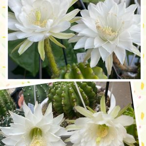 エキノプシス属 短金丸💕 金盛丸と短毛丸の良いところ取りのサボテン🌵 まだ雌しべは、閉じているけど 綺麗です🥰 2輪一緒に咲くのもちょっと豪華。 いつか3輪同時。なんて時も来たら嬉しいな〜
