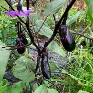 初めての茄子、無事に収穫〜♪ 「超やわらか茄子」っていうやつだけど さて、何で食べようかな♪( ◜ω◝و(و "