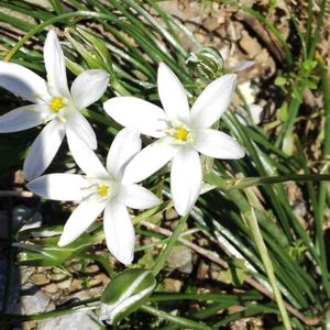 この白い花の名前を教えてください。 オオニソガラム キジカクシ科オオアマナ属 別名 オオアマナ 森のくまさんに教えて頂きました。