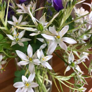 買い物ついでに花も買った💐 この白いオオニソガラムっていう花に一目惚れ✨スターチスは「ブルーファンタジー」という品種名だそう💙