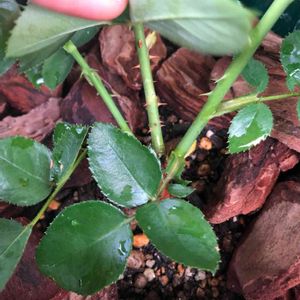 今日のエルさんです。元の葉は傷んでるのがありますが、葉が増え、少しずつ元気になっていってる気がします。 ペーサルシュートの葉も少しずつ開いてきています。 緑が濃い葉です。7枚葉になりそうなものがあり、もとのエルさんの葉と違うようにも見えますが、検索した野薔薇の葉は艶がなく、葉も小さめで淡緑ということなので、エルさんの葉だと思ってもう少し様子を見ます。