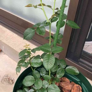 今朝のエルさんです。とうとうもとの枝をベーサルシュートが追い越しました。 でもまだ蕾の気配がないんですよね〜 もう一本の方も頑張って欲しいです。