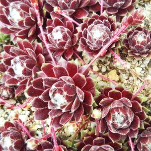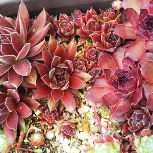 小さくて可愛いセンペルビウム・レッドプルシェさん😻💕 去年の長雨で 数が減りましたが その分子株ちゃんの着地地点が増えました😺💓