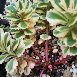 セダム・アトランティスさんの新芽ちゃんが 🌹の蕾ちゃん魅たいで 可愛いです😻💗 一部セダムさんの冬芽ちゃんは この状態なのですが 春に出る新芽ちゃんも同じだとは ちょっと吃驚😸🎶 同じお色の 茎ちゃんも可愛いなぁ…😺💓
