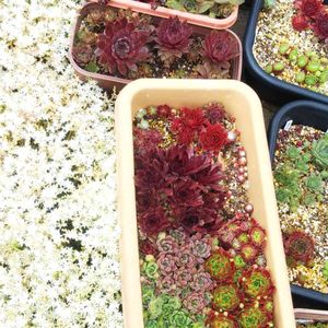 難しいセンペルさん群生 綺麗に分配したいのですが 勢力争いがあったり センスが無かったり…🙀←多分後者😿💨 真ん中のは一昨年 左は去年 右は5,6年前 作です😺