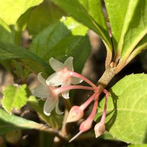 こんにちは🍀 コクランの近くで咲いていたヤブコウジです。 うつむき加減で可憐で、 優しい乳白色がとっても可愛いです🤍 花柱が飛び出てるのがまた、チャームポイントです💕 右真ん中➡️は、ちょうどふわふわの 苔の上に花が落ちていました。 可愛い💕 うつむいている花の中の様子が よくわかってラッキー✌️😆 ⬅️に花弁が落ちて子房が残った様子のも あります。 蕾↘️も、艶々で可愛いです(≧▽≦) 全く珍しいものではないですが、 ちょっと透明感ある花冠(特に⬅️)に 真ん中の小豆色っぽい葯が、 ちょっと和菓子みたいで 美味しそうで可愛かったです😋 ヤブコウジ (藪柑子) サクラソウ科 ヤブコウジ属 常緑草状小低木 在来種 別名:ヤマタチバナ(山橘)、ジュウリョウ(十両) 北海道(奥尻島)〜九州の山地の林内に生える。 高さ10~20㎝。葉は互生。茎の上部に3~4個輪生状。長楕円形で先端は尖り、基部はくさび形、縁には細かい鋸歯がある。 花期は7~8月。 前年枝の葉腋に径5~8㎜の白い花を下向きに数個つける。花冠は5裂し、裂片は広卵形、腺点がある。雄しべは5個、葯は狭卵形で暗紫色の斑点が並ぶ。雌しべは1個。葯の間から花柱が長く突き出る。 果実は核果。直径5~6㎜の球形、10~11月に赤く熟す。 生薬(紫金牛)として、解毒薬、のどの腫瘍、せき、慢性気管支炎に用いられる。