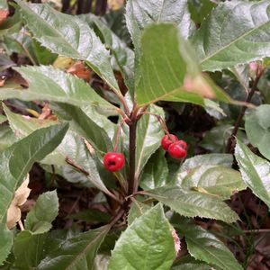 庭に赤い実の付いた椿の葉のような植物が咲いてます。背の高い植物ではありません。所々に咲いてますが花は見当たりません。何の植物でしょうか?