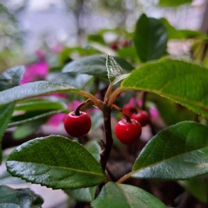 🍃🔴我が家の赤い実キャンディーズ🔴🍃 2枚目はチェリー🍒のように、 艶々の可愛い🔴🔴実がデュエット🥰💞