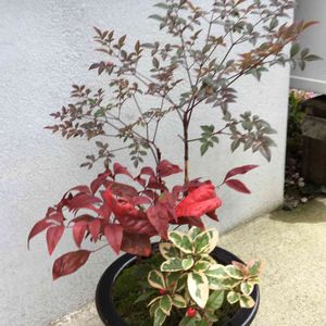 南天2種、藪柑子2種の よく見かける、シンプルな寄せ植えを作ってみました。