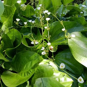 ★エキノドルス・グランディフロルス・アウレウス★ オモダカ科の多年草 花期:6〜11月 南アメリカ原産 直径3cmほどの白い花が、緑の葉に映えていました。葉は大きく、茎が蔓のように伸び、透き通るような薄い花弁が上向きに点々と咲いていました🤗 2025.7.20 筑波実験植物園にて📱