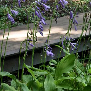 今日のお花 ★コバギボウシ(水擬宝珠)★ キジカクシ科の多年草 花期:7〜8月 日当たりの良い湿地、水田の畦、用水路脇などに生える。 ー特徴ー ※葉…ギボウシの仲間の中では葉が小さい。先が尖った細長い楕円形、葉脈がやや凹んでいる。 ※花…赤紫色や淡紫色の花をつけ、花の内側に濃い色の筋が目立つ。一日花 近くに“コバギボウシ”があり、この花のネームプレートには“ミズギボウシ”とあったが、葉が線形でなく丸みを帯びているので、“コバギボウシ“としました。 2025.8.14 筑波実験植物園📷️