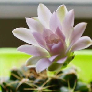 以前に100円ショップで迎えた麗蛇丸に花が咲きました🌸 とっても淡くて美しくてずっと眺めていたいです。なんの変化もないまま時が過ぎていたので、花芽がついた時は、無事に咲いてと願って願っての日々でした❣️