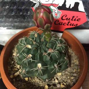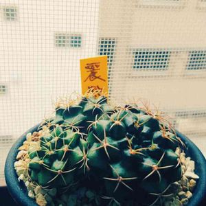 ギムノカリキウム と書かれた札の刺さってた、ダイソー出身のサボテン。 一年経って、ひと回り大きくなったなぁ♪ 牡丹玉はもしかして花が咲く!?