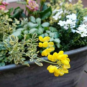 ふんわりして可愛い花を見つけました。 コロニラバレンティナバディエガーター ………絶対に覚えられない💧 家に溜まってた寄せ植え待ちのお花達、ようやく鉢に植え替えられました。 さわやかな黄色。 テラスが一気に明るくなりました✨