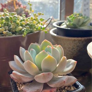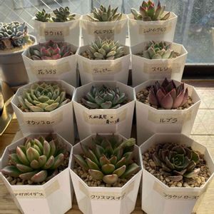 ユメカワカラーのデレッセーナ 左側は落としてしまい葉が折れてしまいました。 形がいびつですが可愛いです。 寄せ植えに使おうかなぁ