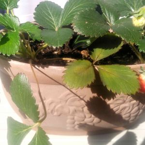 花とランナーを出した「とちおとめ」。 ランナーだけ切り落として様子を見ていたら、実をつけた。 これは元々大きいプランター内で増えたものを引っこ抜いて植え直したもの。 小さい鉢だし、文字通り引っこ抜いたのですぐ枯れるだろうと思っていた。 結果は、大きいプランターが今年の夏でほぼ全滅。この子らは生き残った。しかも元気である。 この他に育てていた品種も壊滅してしょんぼりしていたが、今年はいちごがかなり枯れたという農家さんの動画を見て、今年はおかしかったんだなと納得。そして、そんな中生き残って実までつけてくれたとちおとめちゃん、感謝です。 今なってる分だけいただいて、後は冬越しの準備しよう。