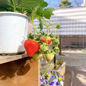いちご🍓デビュー✨ 可愛いとちおとめが仲間入り💛 すでに完熟したいちごができていたので、ヨーグルトに入れて食べました❤️ 今日は暖かくて最高ですね♪