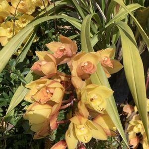 おはようございます☀️ 昨日のお花 🧡シンビジウム🧡💛💚 わが家の今年の春先のpicです💕 来年も花芽がつくといいなぁー 外置きです💕 楽しみです😊