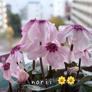おはようございます。 予報通り、今朝は寒い! ベランダで咲いているシクラメン イリージ ピンクラテ🩷 とてもキュートな咲き方で 可愛い〜🥰 お友だちからのプレゼントです。