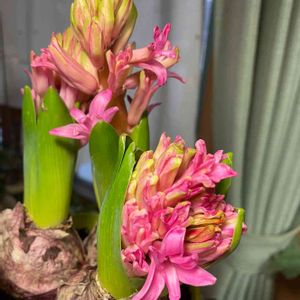 おはようございます。 我が家のヒヤシンスが咲き始めました。 3本ともピンクでした(^-^) 夜中の強風凄かったです。