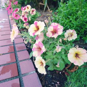 花壇の縁沿いに並べて植えたペチュニア。品種改良品だったおかげか、見切り品のワリには暑さにも負けず元気に咲いてくれてます☺️