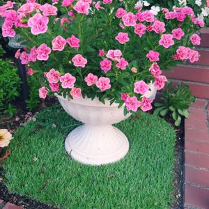 春先に作った、割れた鉢を使った寄せ植えの現在の様子。 →サイドから見ないと割れ鉢と分かんない位のボリュームになりましたが…この数日の暑さのせいか、お花の数はちょっと微妙…秋口に期待したいです💪