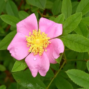 オオタカネバラ(大高嶺薔薇)にローズヒップができていました。 ⬇下、梅雨前に開花した様子です。 一重咲きでハマナスの花に似てますね