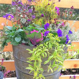 寄せ植え・・・大好きなんですが、とても苦手です😅 今回も、可愛いものばかり集めてきたハズなんだけど・・・あと庭にあったコクリュウとムラサキゴテン、ポリゴナムを入れてみました。何が足りない?多い?植え方?? シルバーリーフでも足せばどうかしら?アドバイスよろしくお願いします😅