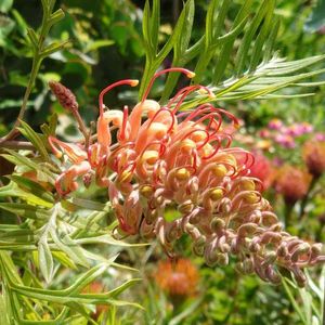 大型グレビレアが暑さに負けずに咲いています〜大きく育って庭がジャングル😅