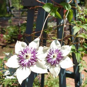 おはようございます🌄 クレマチス シーボルティーが仲良く並んで咲いています👫 真っ白な花弁に紫の雄蕊のコントラストが印象的💜🤍🌿 素敵な週末をお過ごしください😉✨ 🏷美しく青きドヨウ 🏷おしゃれな土曜日♪