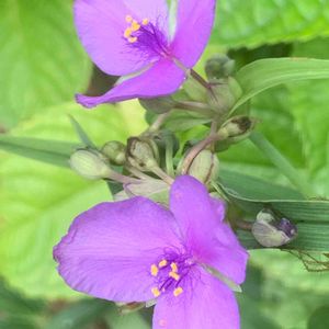 【紫露草】《ツユクサ科》 花言葉 『ひとときの幸せ』 『快活』 『尊敬』 『尊敬しているが恋愛ではない』 ムラサキツユクサは、日本古来の野の花「露草(ツユクサ)」と同じツユクサ科の別属 「ムラサキツユクサ属(学名:Tradescantia トラデスカンティア)」 の仲間の総称です。ツユクサの青色より紫に近い花色のものが多いので、 「紫露草(ムラサキツユクサ)」 の花名になりました。 2021.7.11