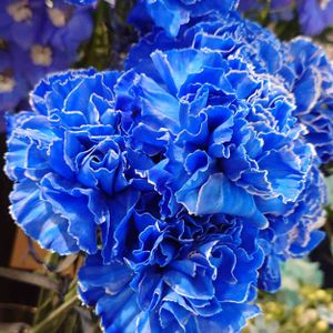 🏷水曜日は水色 ブルーのカーネーションの花、とても素敵です✨✨ 日比谷花壇のお花屋さんはこの日ブルーデーで、素敵なブルーのお花で埋め尽くされ圧倒されました💕