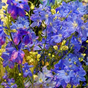 デルフィニウムさん終わったと思ってたらまた咲いてくれました🥰 まだ咲いてるチドリソウと一緒にユラユラ揺れてます🎶