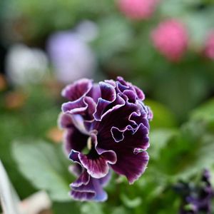 フリルちゃんたち🌼旦那さんがフリルは好きでなく我が家では少なめ😅 こじんまりまとまりよく、かわいいなー🥰 手前黄色 アンティークミルフル 左紫 絵になるすみれ 奥薄黄 花日和イエスプリエール 左紫 98円😅でもモリモリ💕