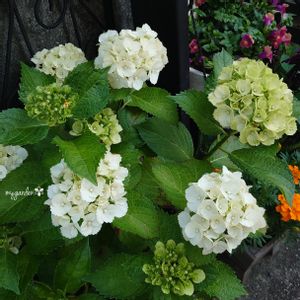 鉢植えにした紫陽花グリーンティーが可愛いです(◕ᴗ◕✿) 花壇より日当たりのいい場所に居るから成長が早いです❁ 色の変化を楽しみたいです✾