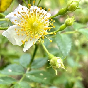 ヤブイバラ(藪薔薇) バラ科の落葉低木で山地の林内や林縁に藪状になって生えています😊 日本産のバラの中では最も小さな花だそうです😃 見事に満開です🤗