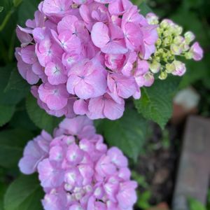 アジサイスプラッシュピンク。前より咲き進みました。全部咲くとどんな大きさになるかな?たのしみ💕